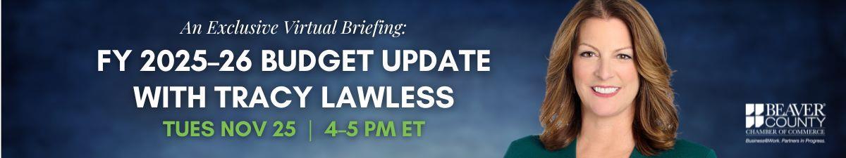 Join us virtually on Tuesday, Nov. 25 from 4–5 PM ET as Tracy Lawless, Government Affairs Counselor at K&L Gates, breaks down the key components of the new budget and its potential impact on Beaver County’s business community.